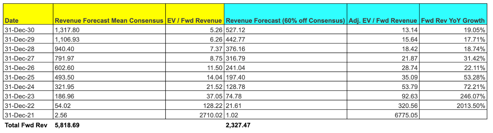 추정치가 인접 시장을 차지할 수 있지만, 이 시점에서 이 시점에서 매우 낙관적인 것으로 생각되며, 투자자들이 "보다 현실적인 가정"을 위해 스트리트 추정치에 최소 60% 할인을 제공하는 것이 적절할 수 있습니다.