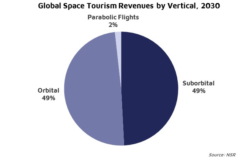 2021년부터 2030년까지 전 세계 궤도 우주 여행 및 관광 시장의 수익을 예측합니다. 데이터 원본: NSR